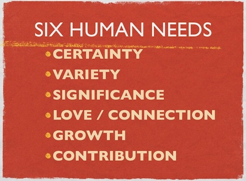 I’m drawing upon Tony Robbin’s work on core human needs. Here are the six as he identifies them: