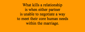 So if – as I have come to believe after nearly 20 years of working with couples – the #1 reason marriages fail and relationships end is because one or both partners is unable to negotiate a way to meet their core human needs within the marriage, then these three things need to happen.
