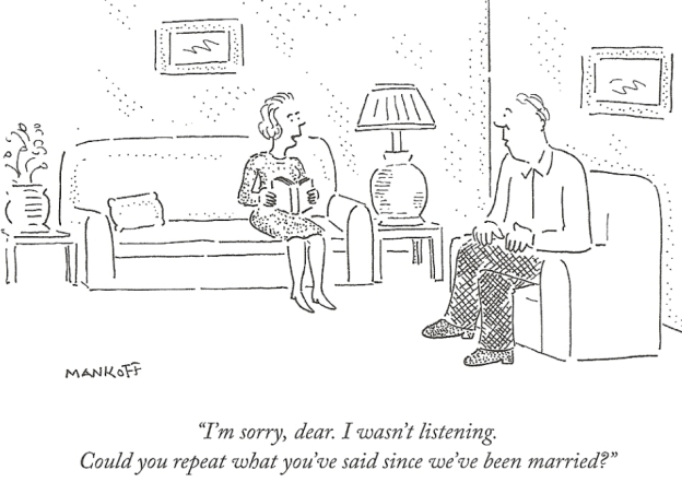 When I was twenty-something my boss, who was thirty-something, told me “When you’ve been married a while, you begin to have the same conversation over and over again.”